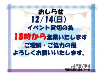 12/14 営業時間のお知らせ