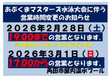 あぶくまマスターズに伴う営業時間変更のお知らせ
